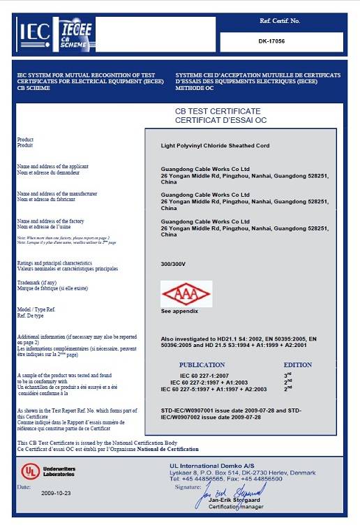 廣東省采用國(guó)際標(biāo)準(zhǔn)產(chǎn)品認(rèn)可證書(1-3kV)