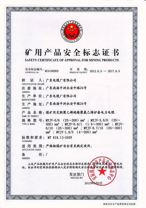 礦用電纜證書