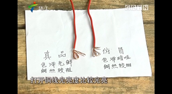 廣東電纜廠有限公司副總經(jīng)理 馮總提示大家:好的產(chǎn)品外觀很有質(zhì)感,打開銅線光亮度比較光亮,單支一條銅芯韌性比較良好,搖晃不容易斷,偷工減料的銅芯比較細(xì)而且脆,通常搖晃很容易斷。(廣東臺(tái)報(bào)道)