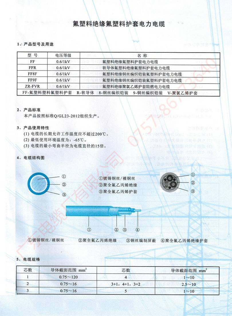 氟塑料絕緣氟塑料護(hù)套電力電纜