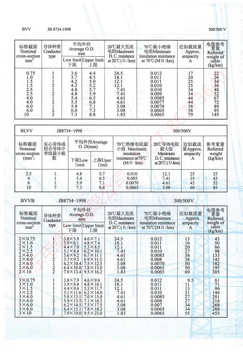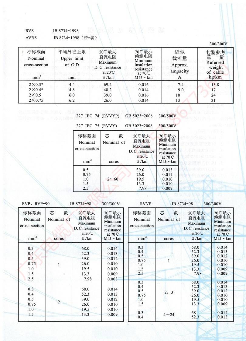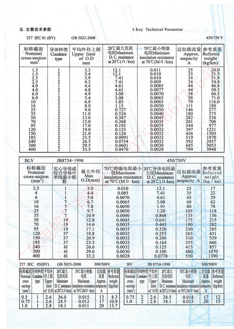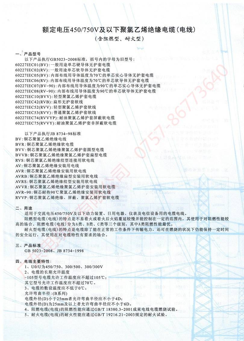 450/750V及以下聚氯乙烯絕緣電纜(電線)