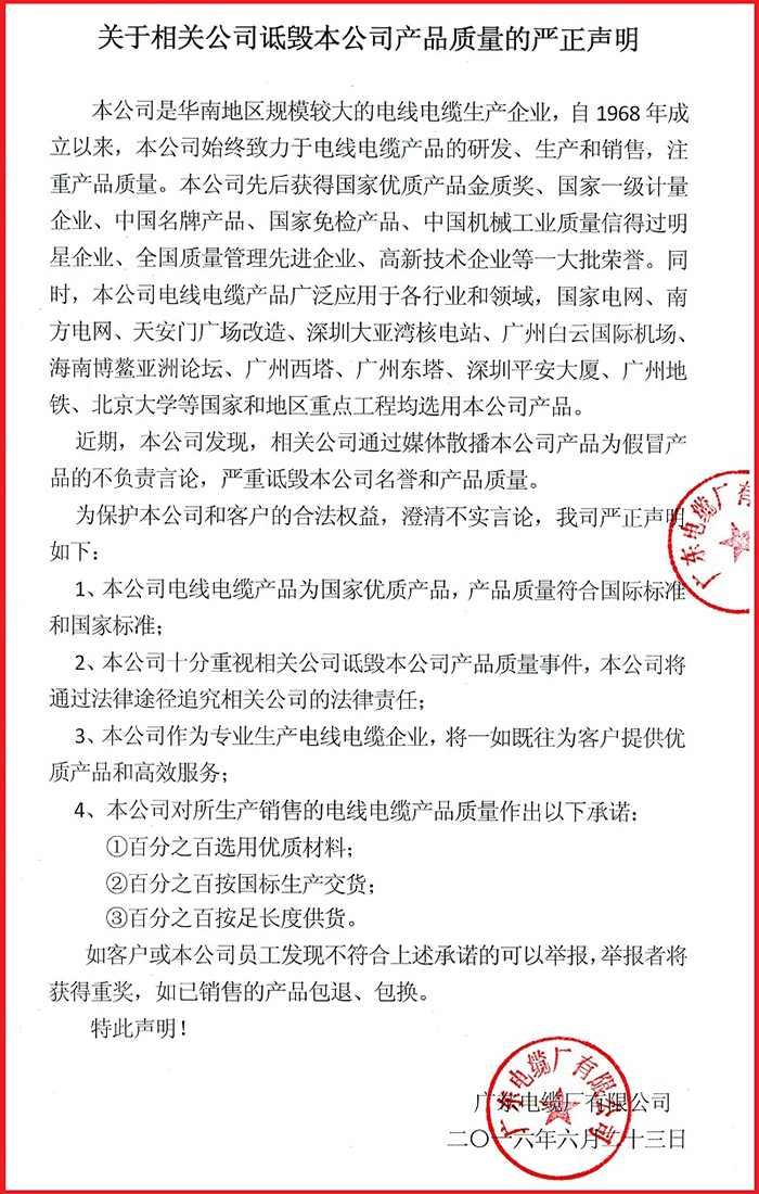 關(guān)于相關(guān)公司詆毀本公司產(chǎn)品質(zhì)量的嚴正聲明