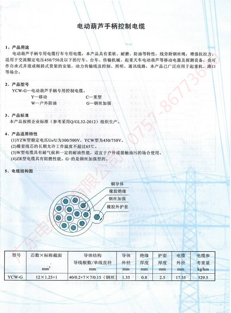 電動(dòng)葫蘆手柄控制電纜