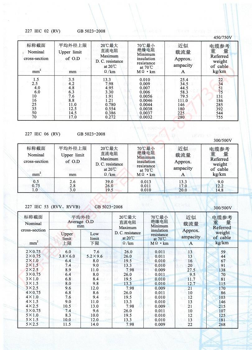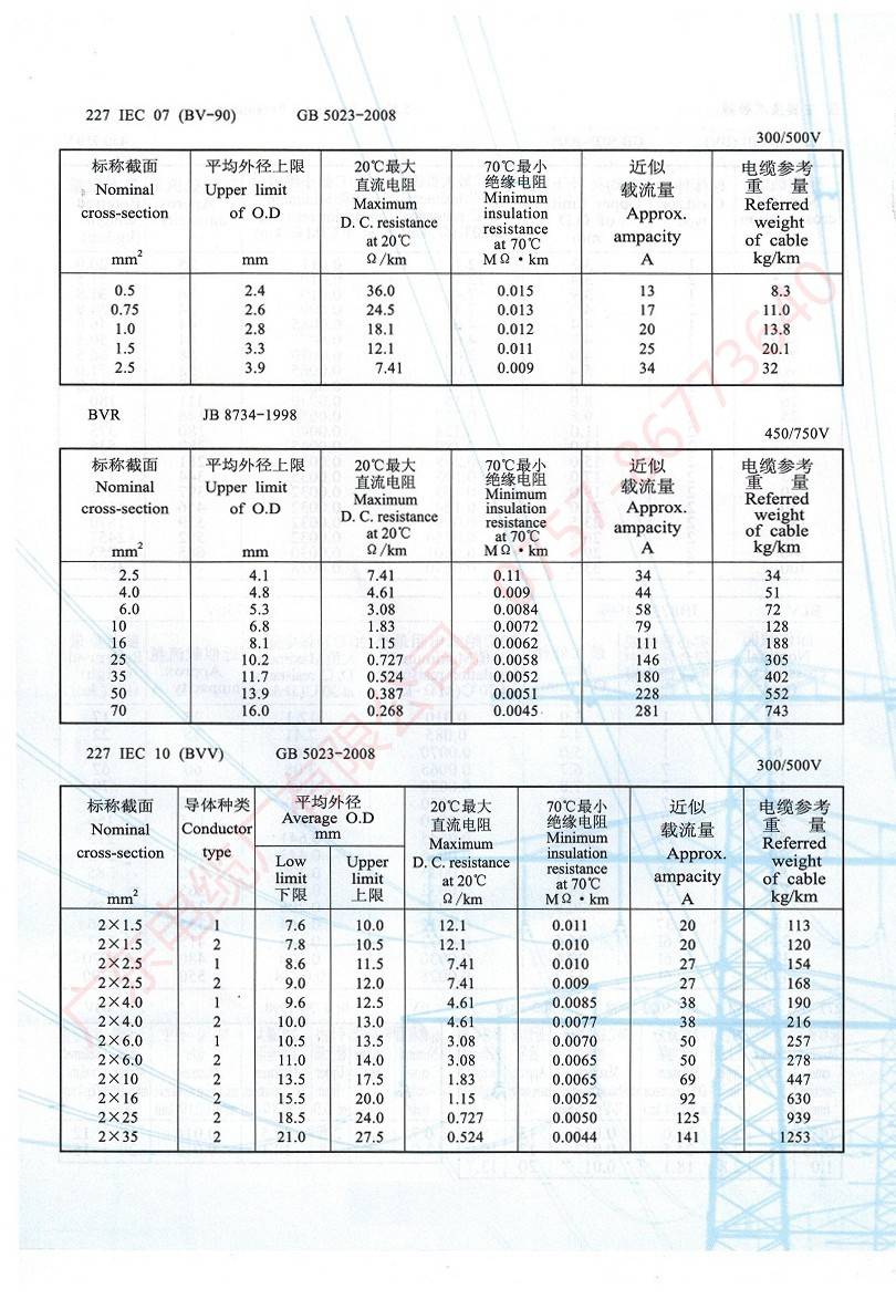 450/750V及以下聚氯乙烯絕緣電纜(電線)