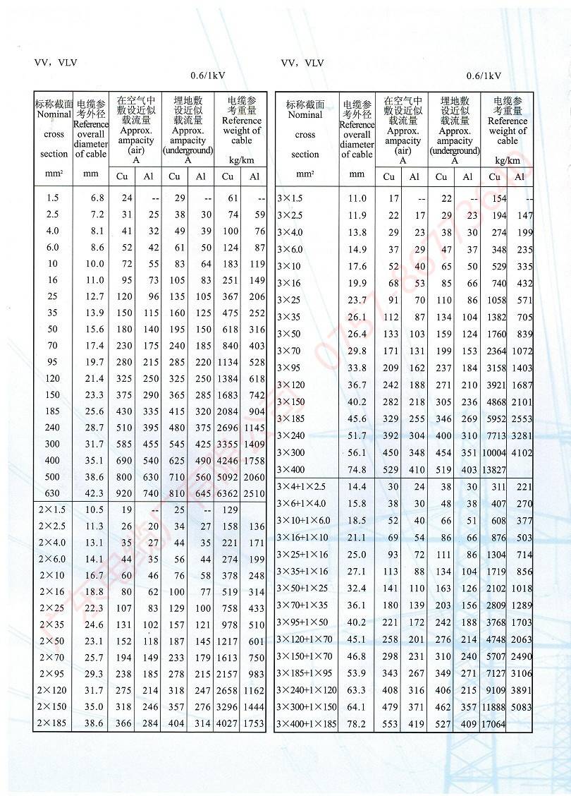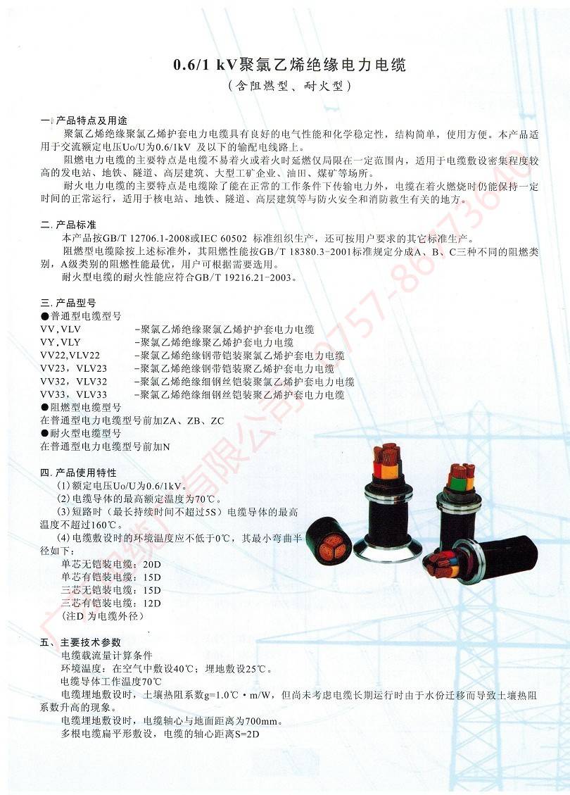 0.6~1kV聚氯乙烯絕緣電力電纜